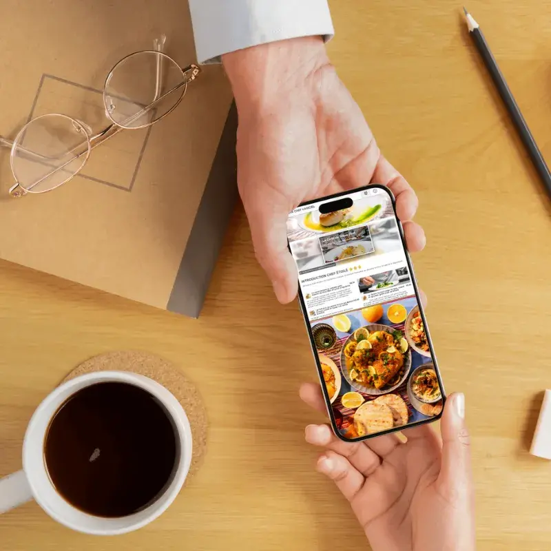 - Carte Digitale Professionnelle : Création et intégration de votre menu (entrées, plats, desserts, boissons, menus) avec photos et descriptions attrayantes.